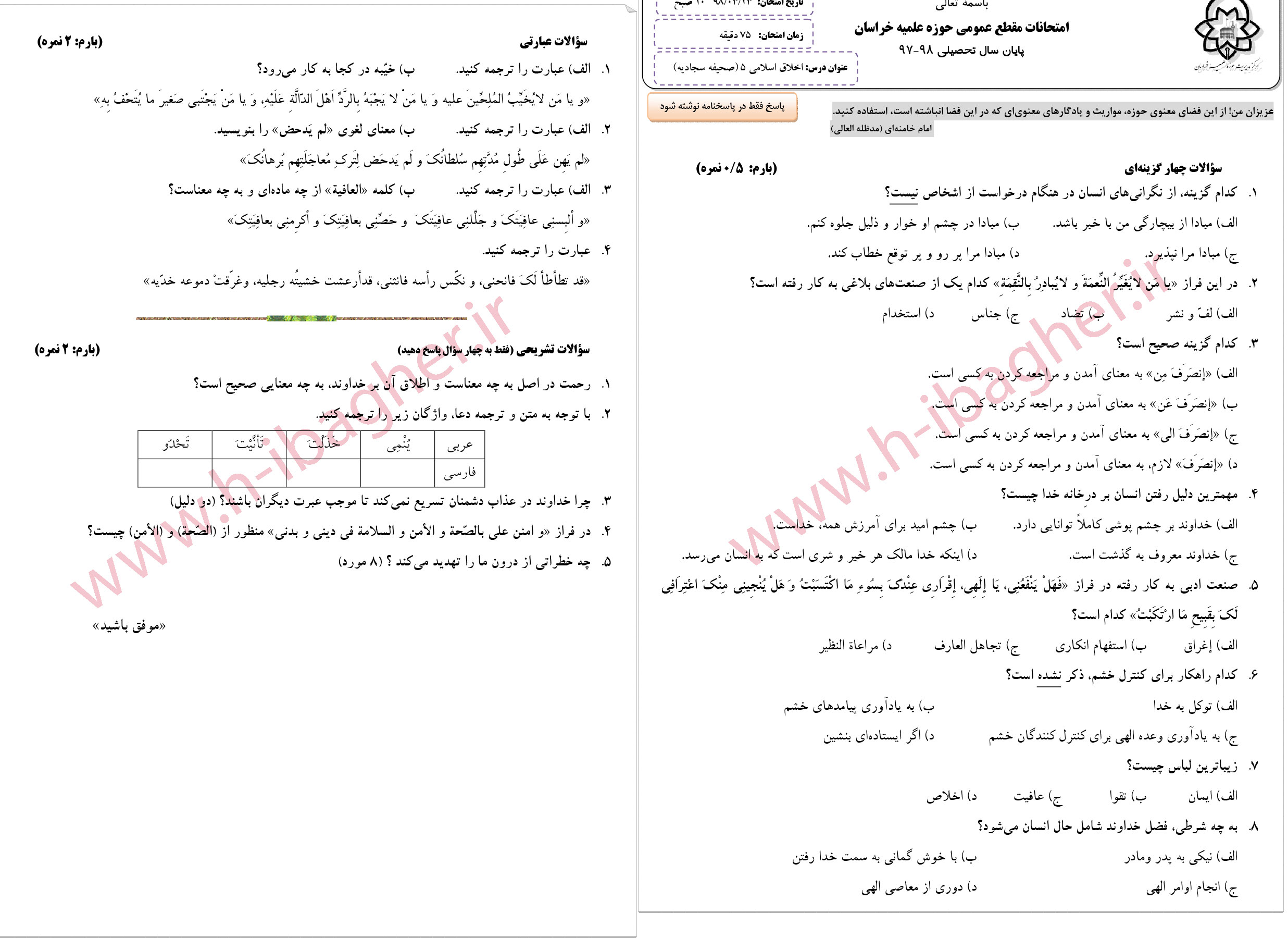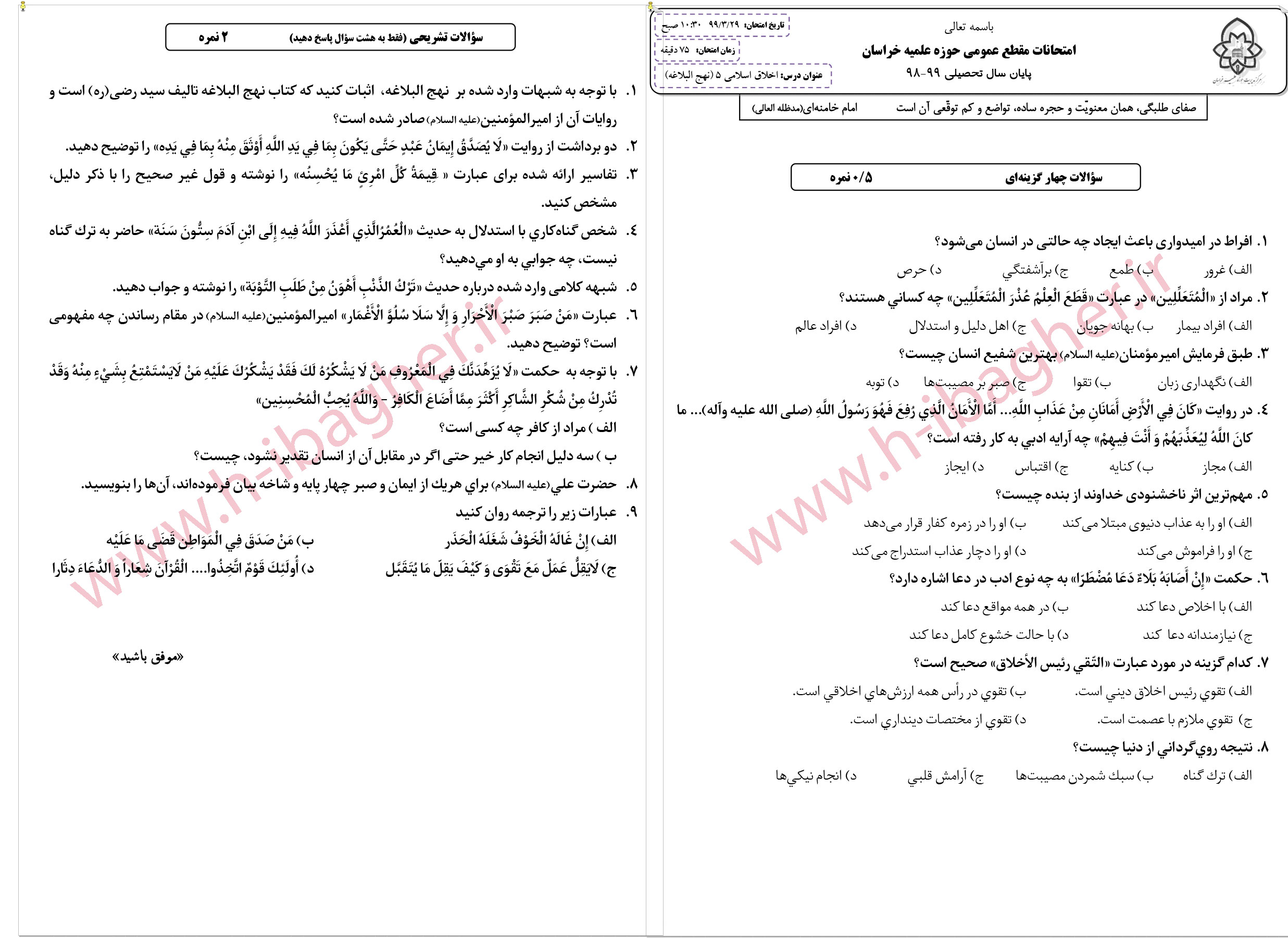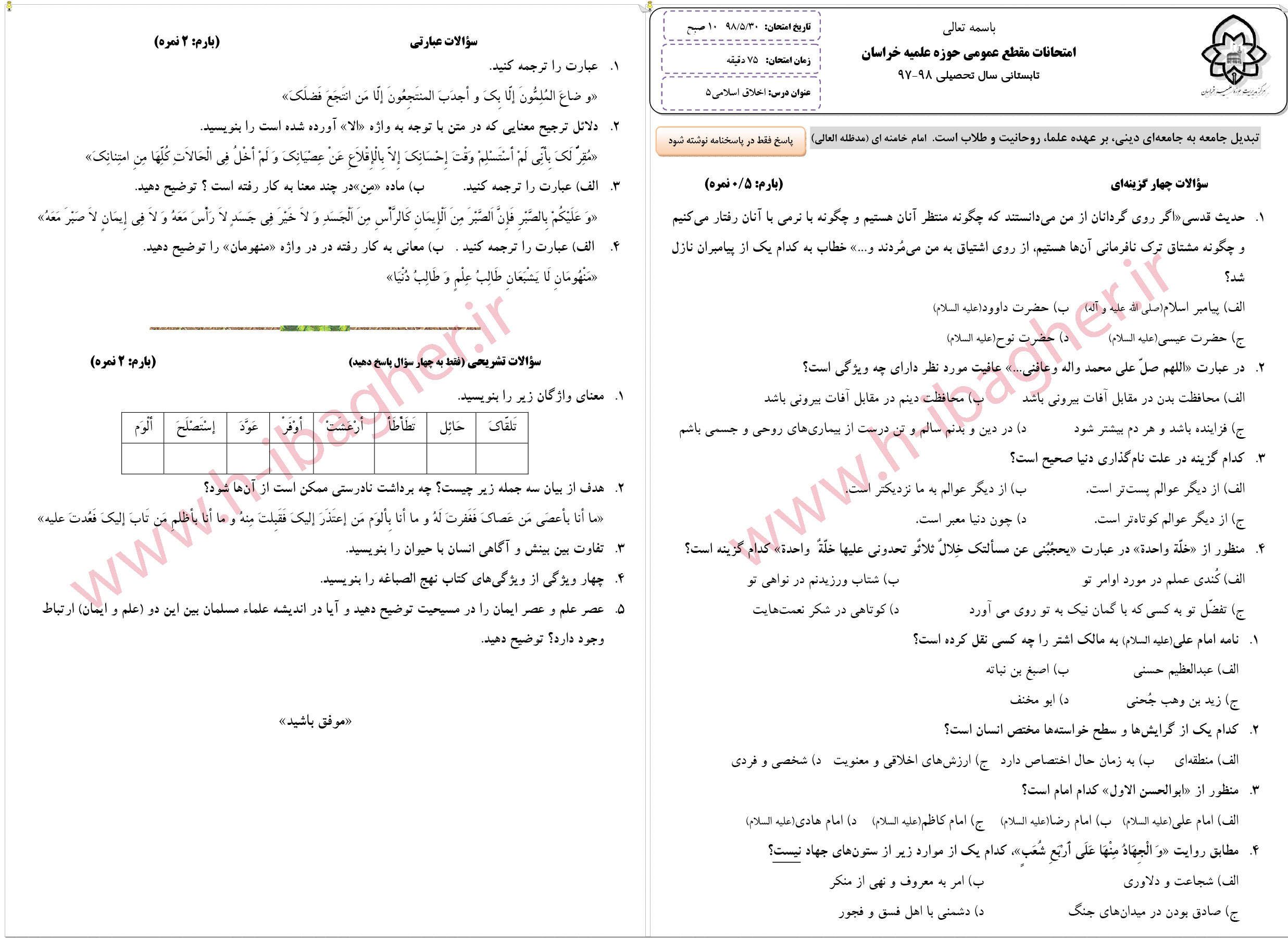 موقعیت شما : صفحه اصلی » پایه پنج » نمونه سوالات امتحانی