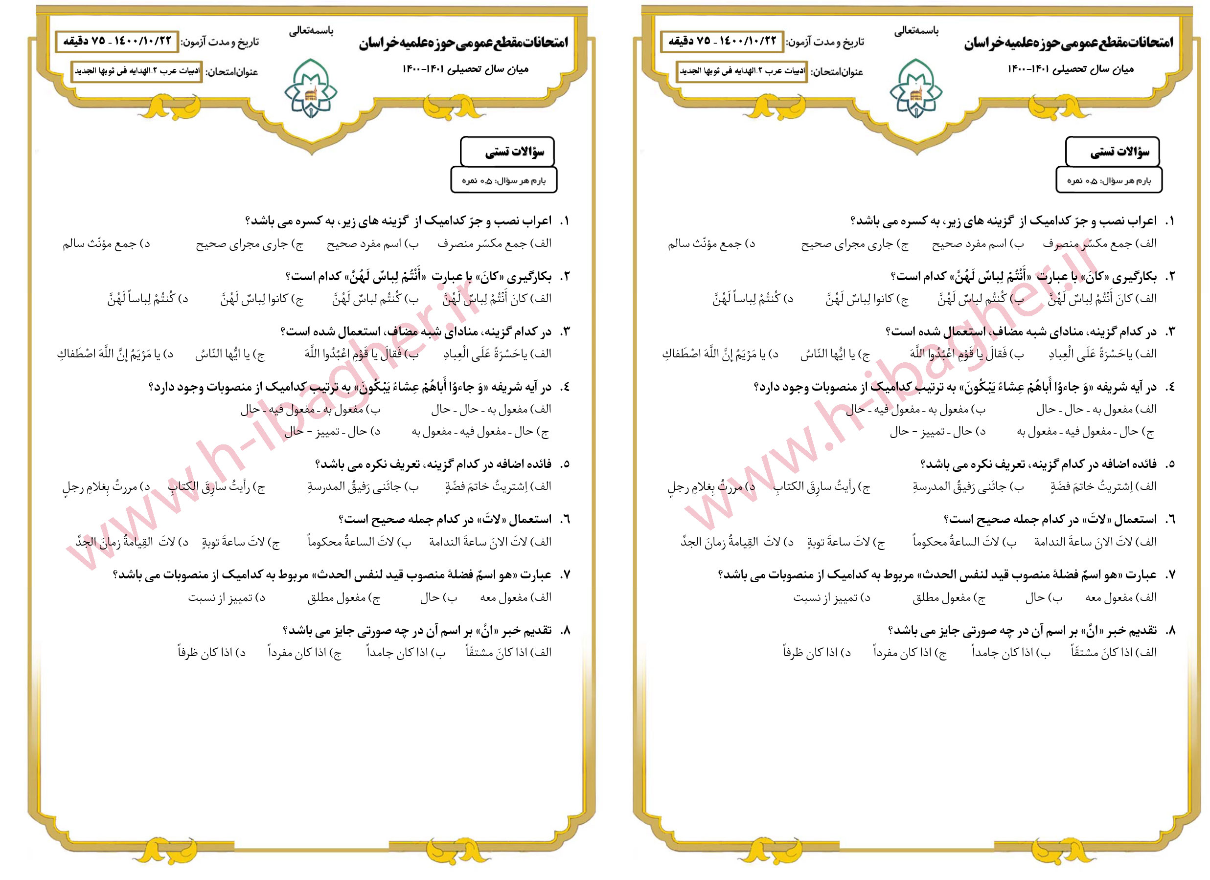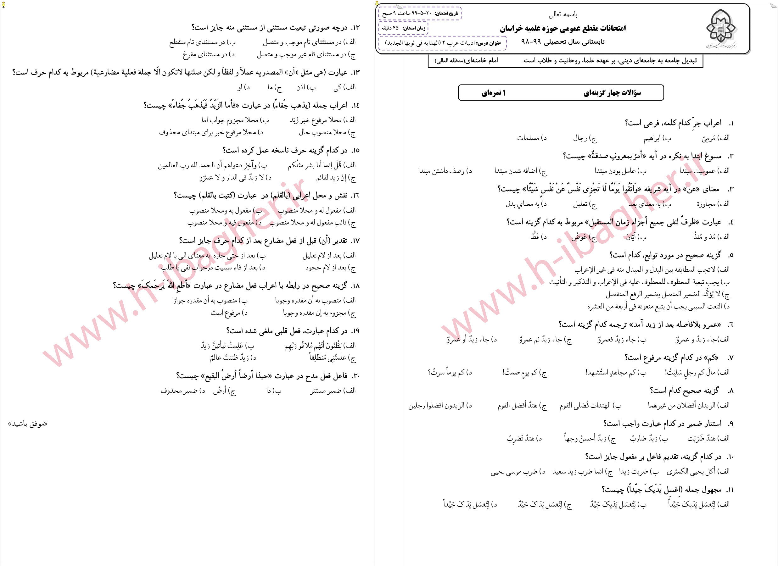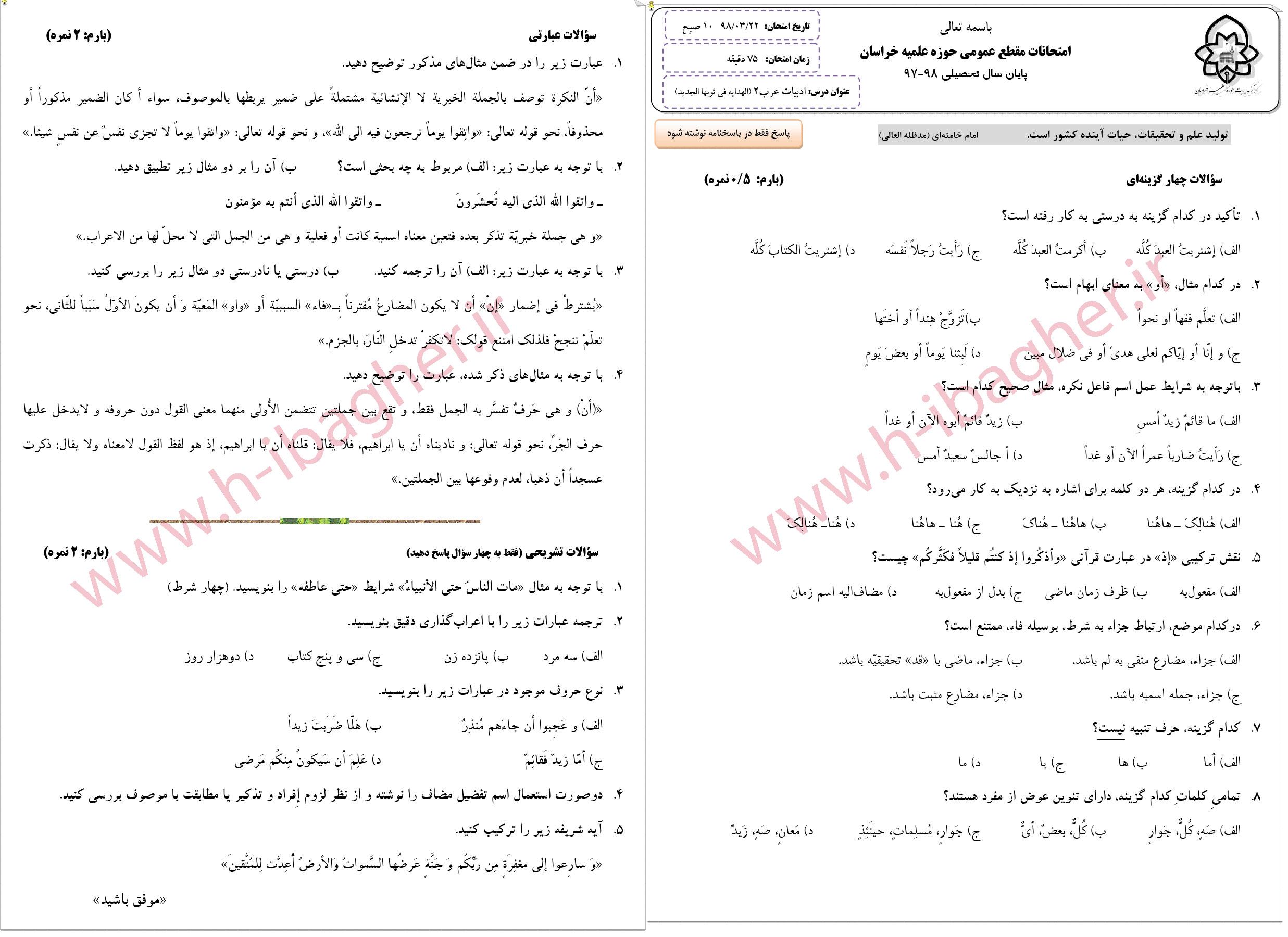 موقعیت شما : صفحه اصلی » پایه یک » نمونه سوالات امتحانی
