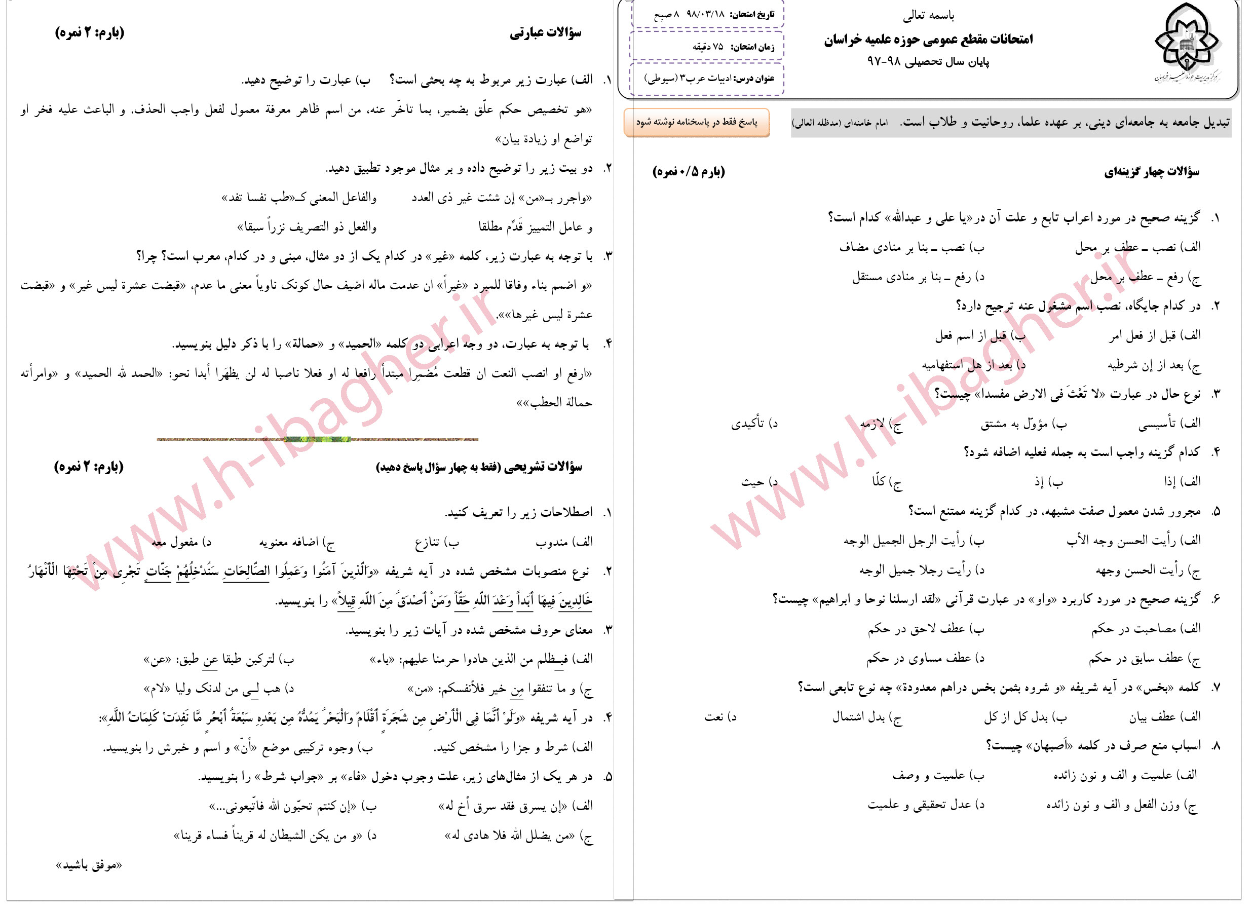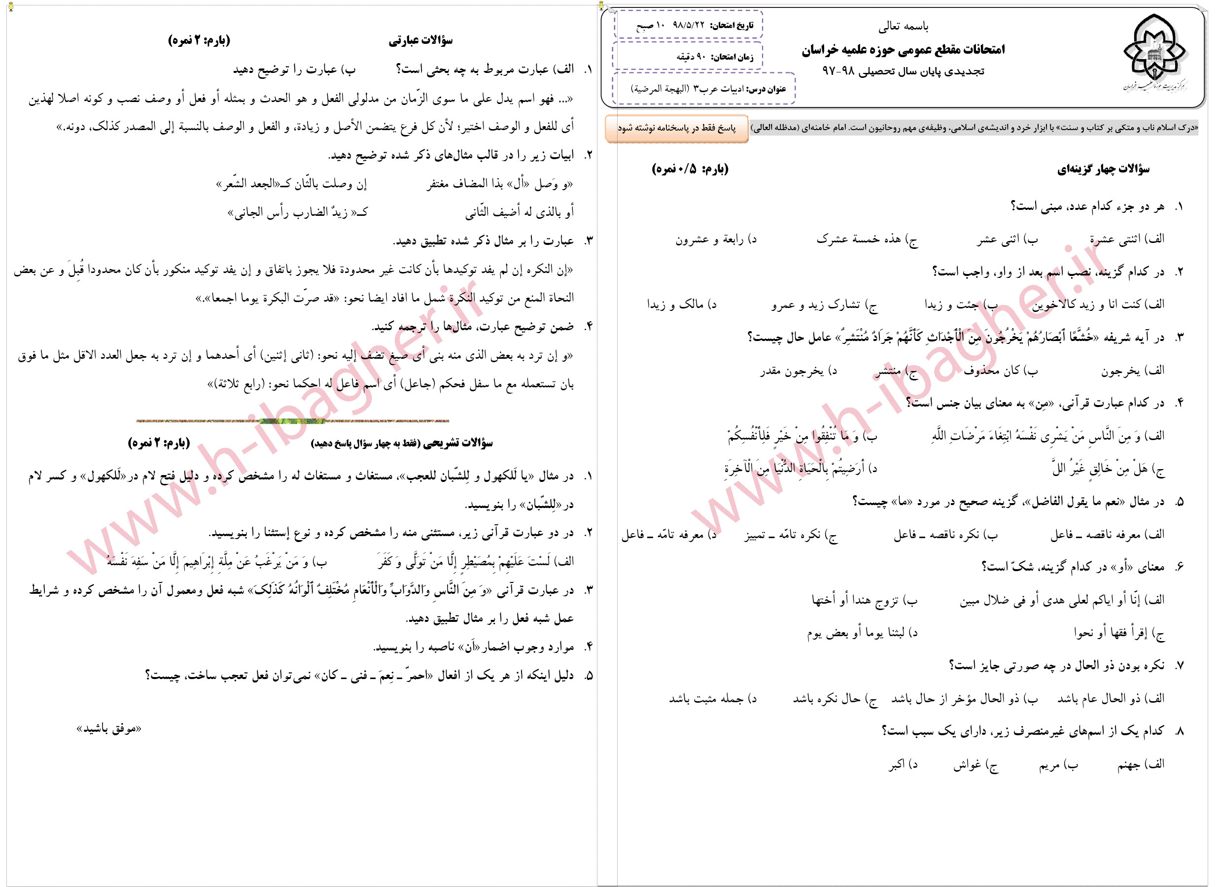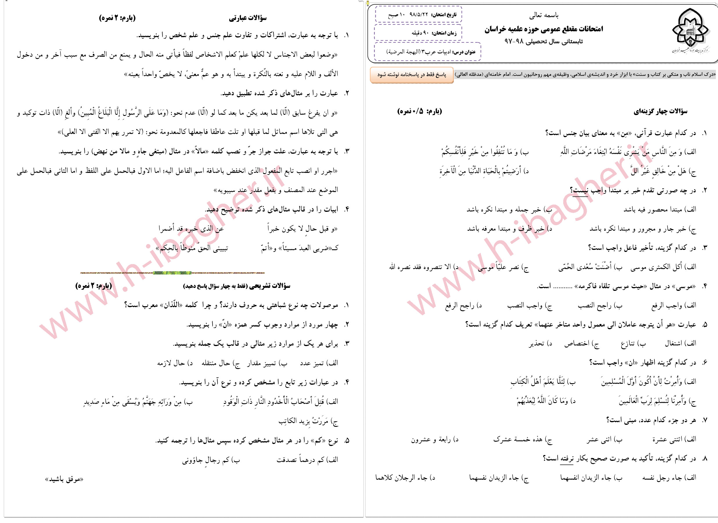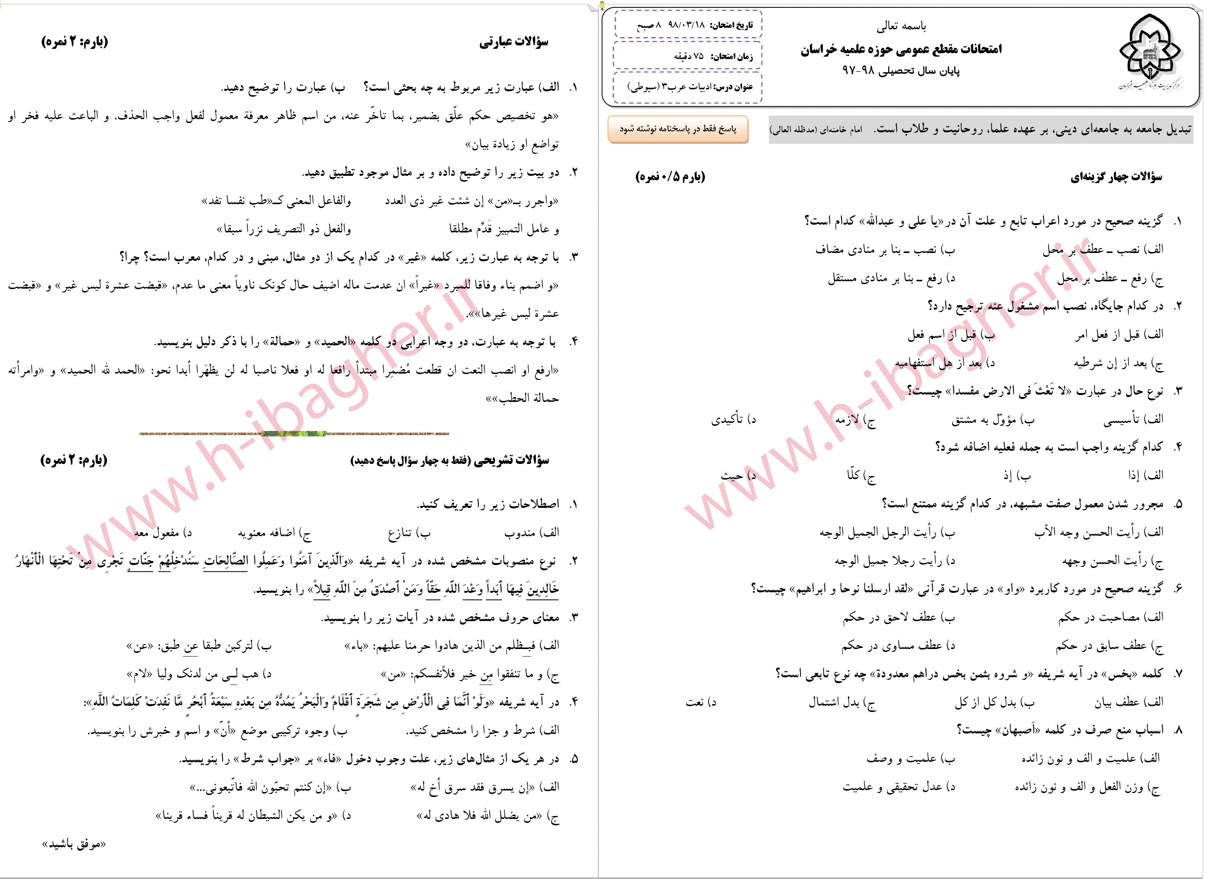 موقعیت شما : صفحه اصلی » پایه دو » نمونه سوالات امتحانی