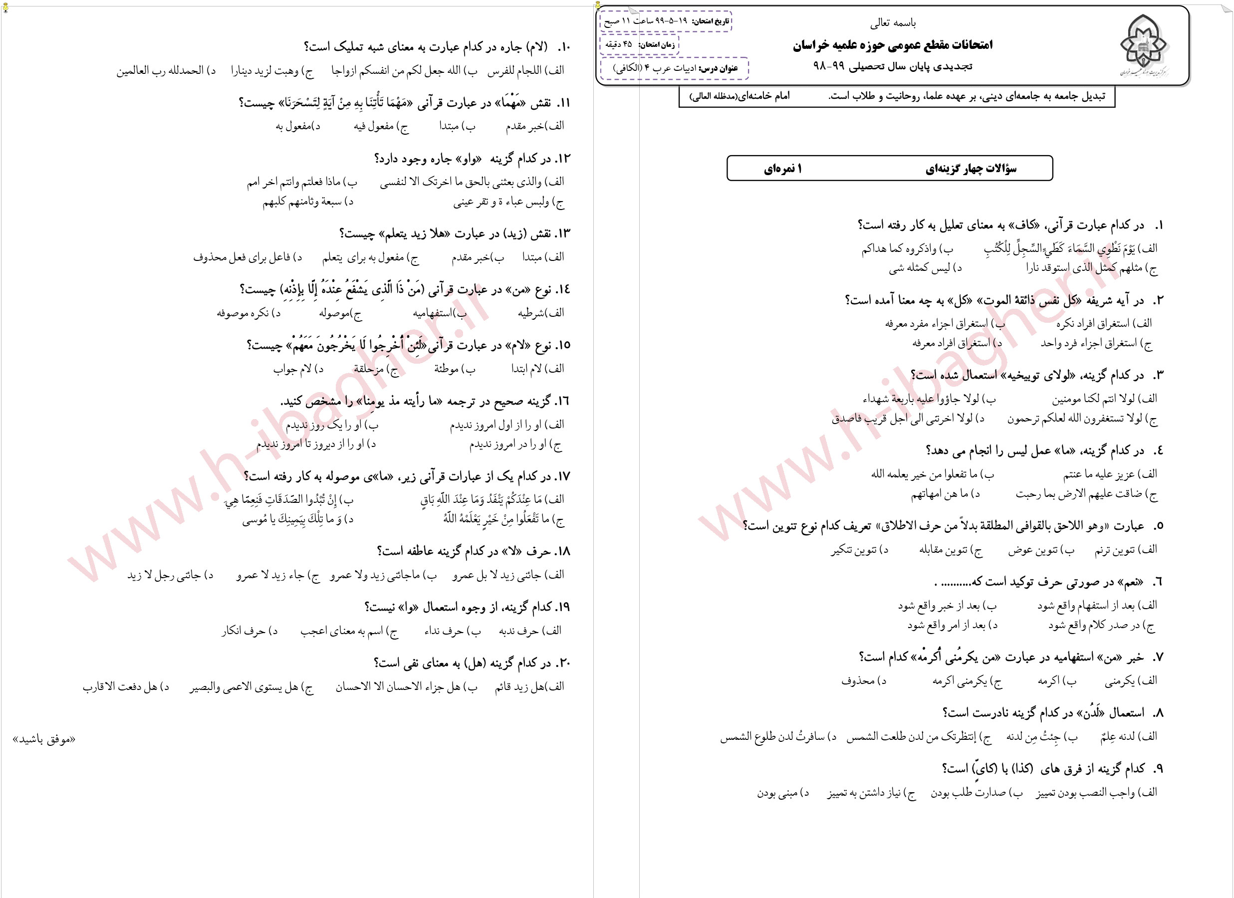 موقعیت شما : صفحه اصلی » پایه دو » نمونه سوالات امتحانی
