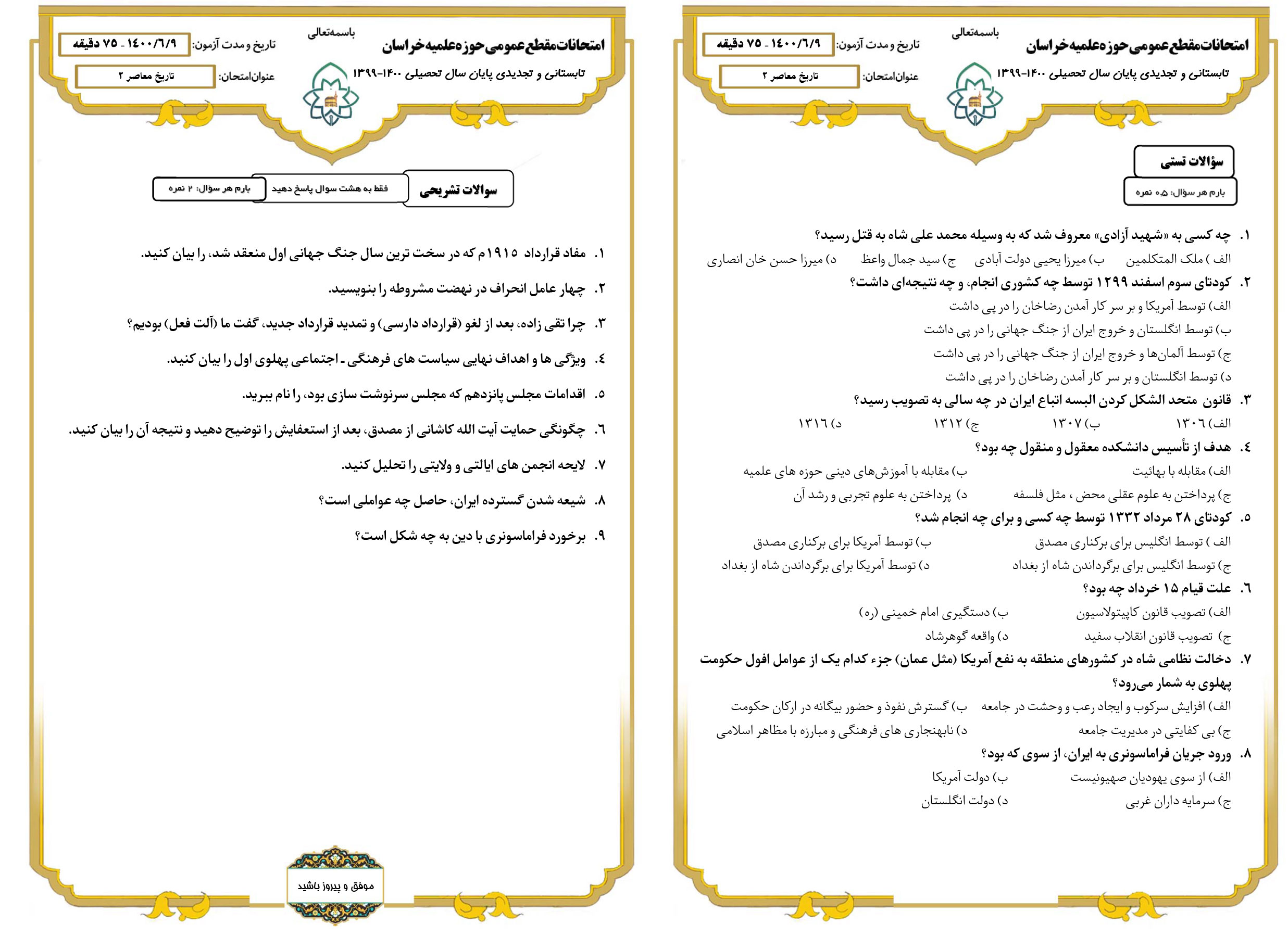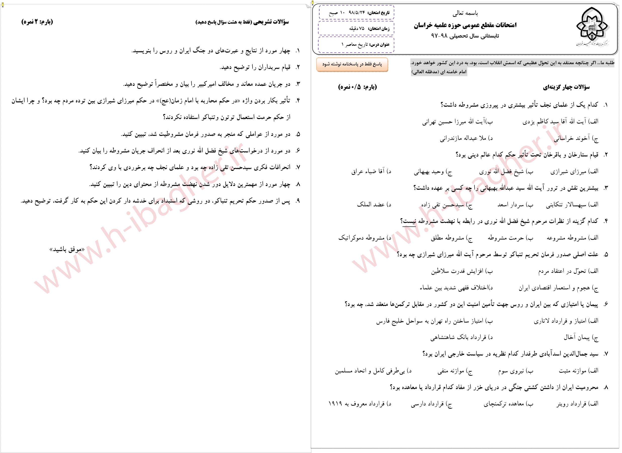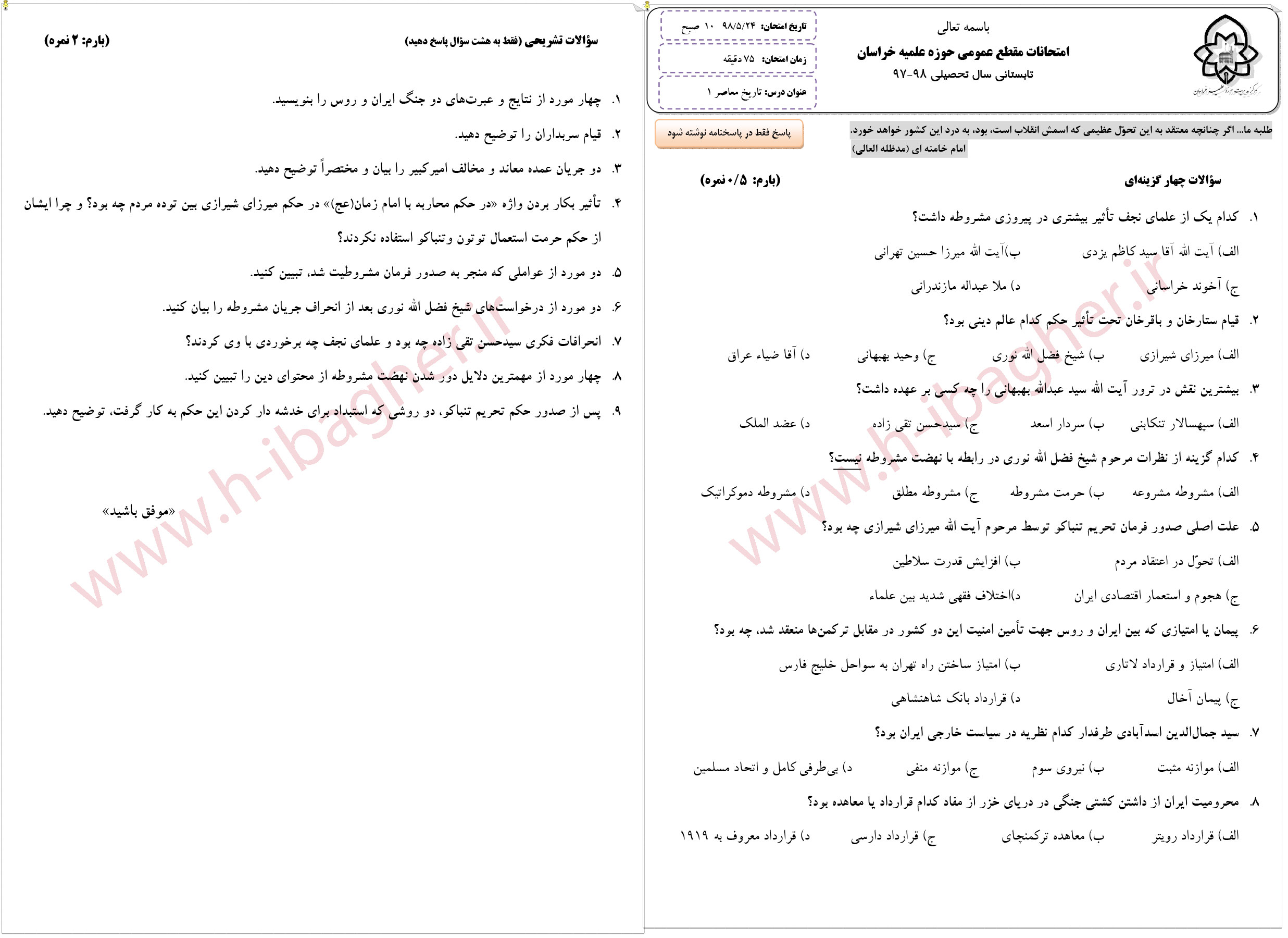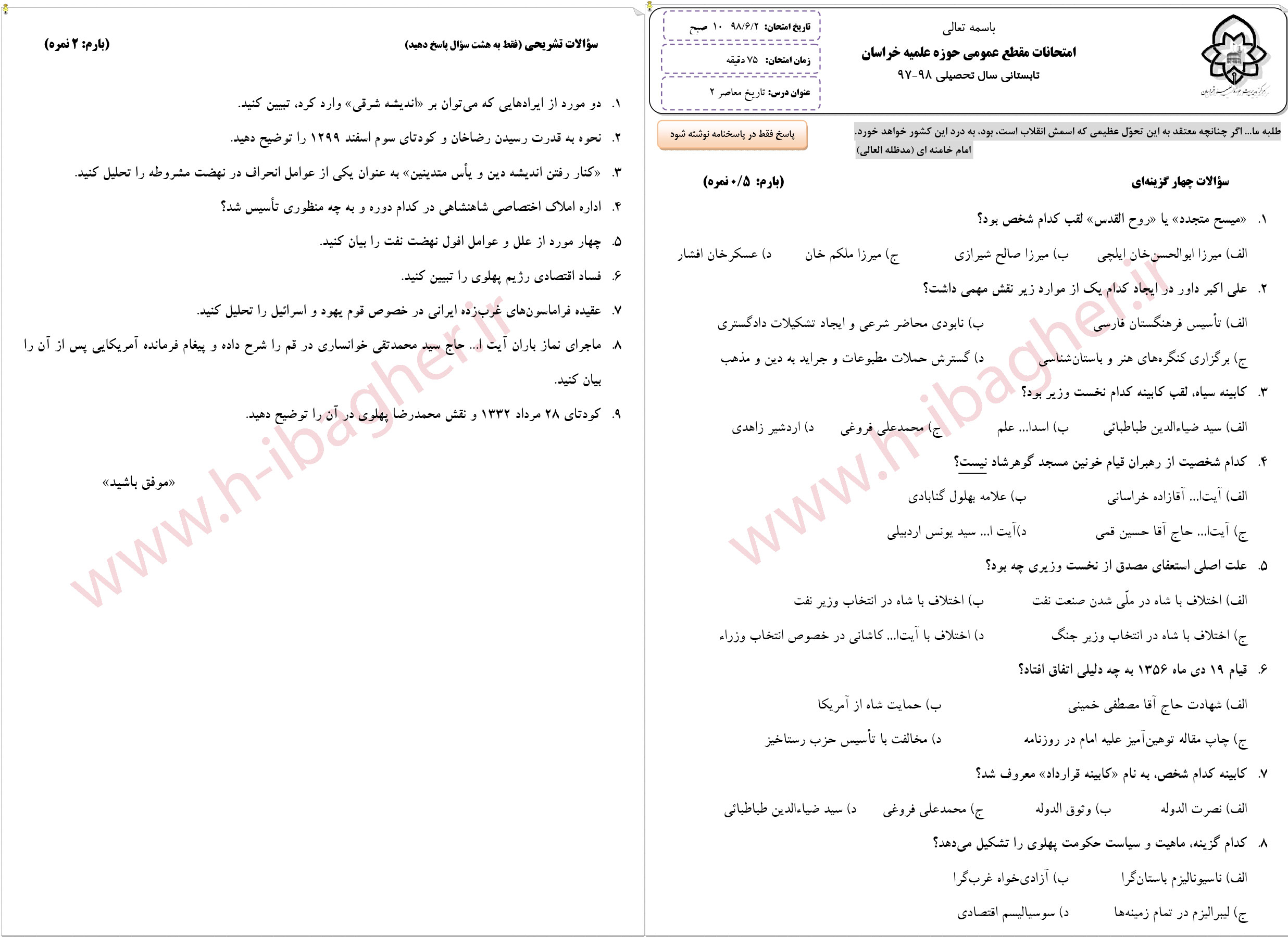 موقعیت شما : صفحه اصلی » پایه چهار » نمونه سوالات امتحانی