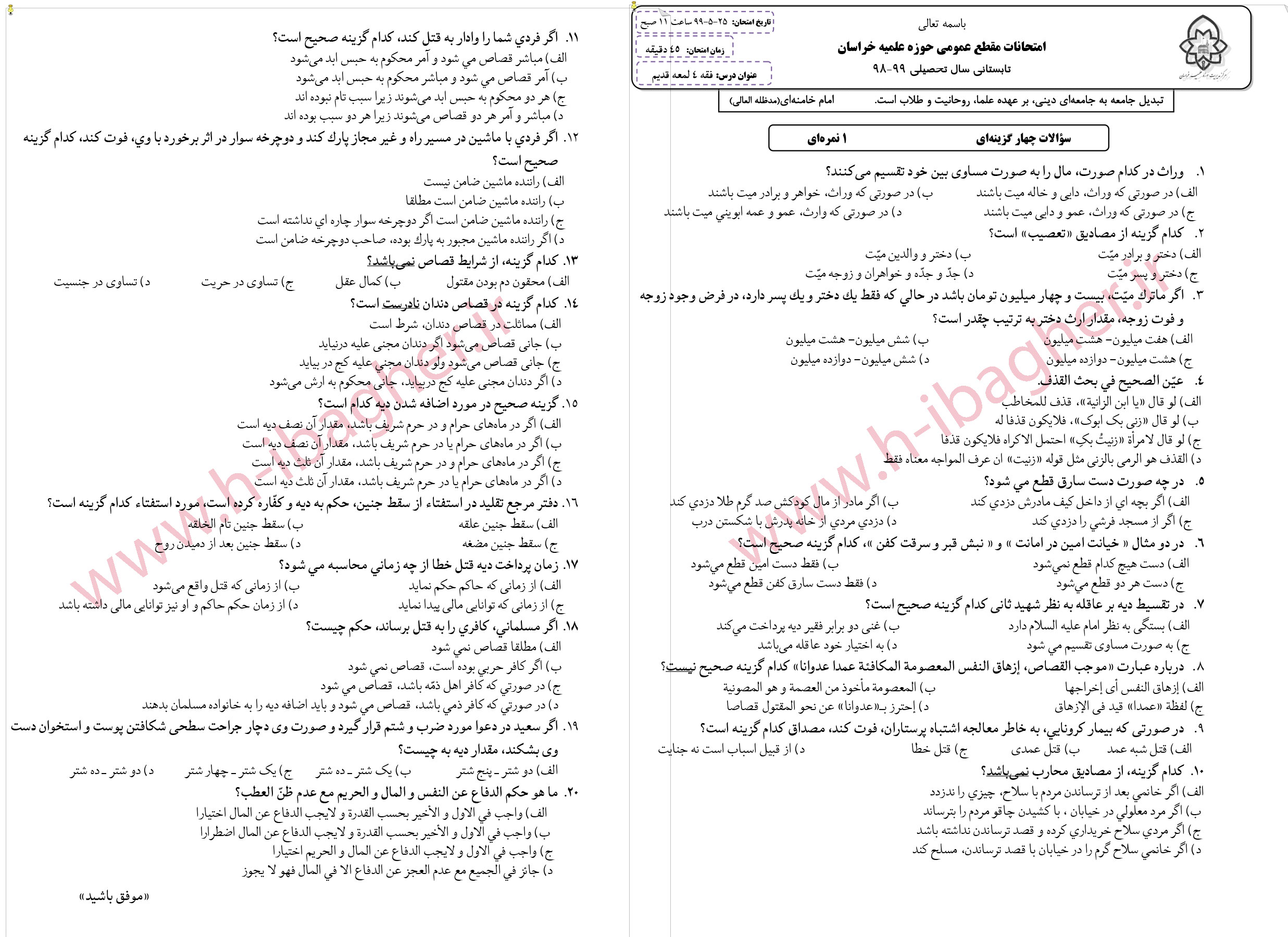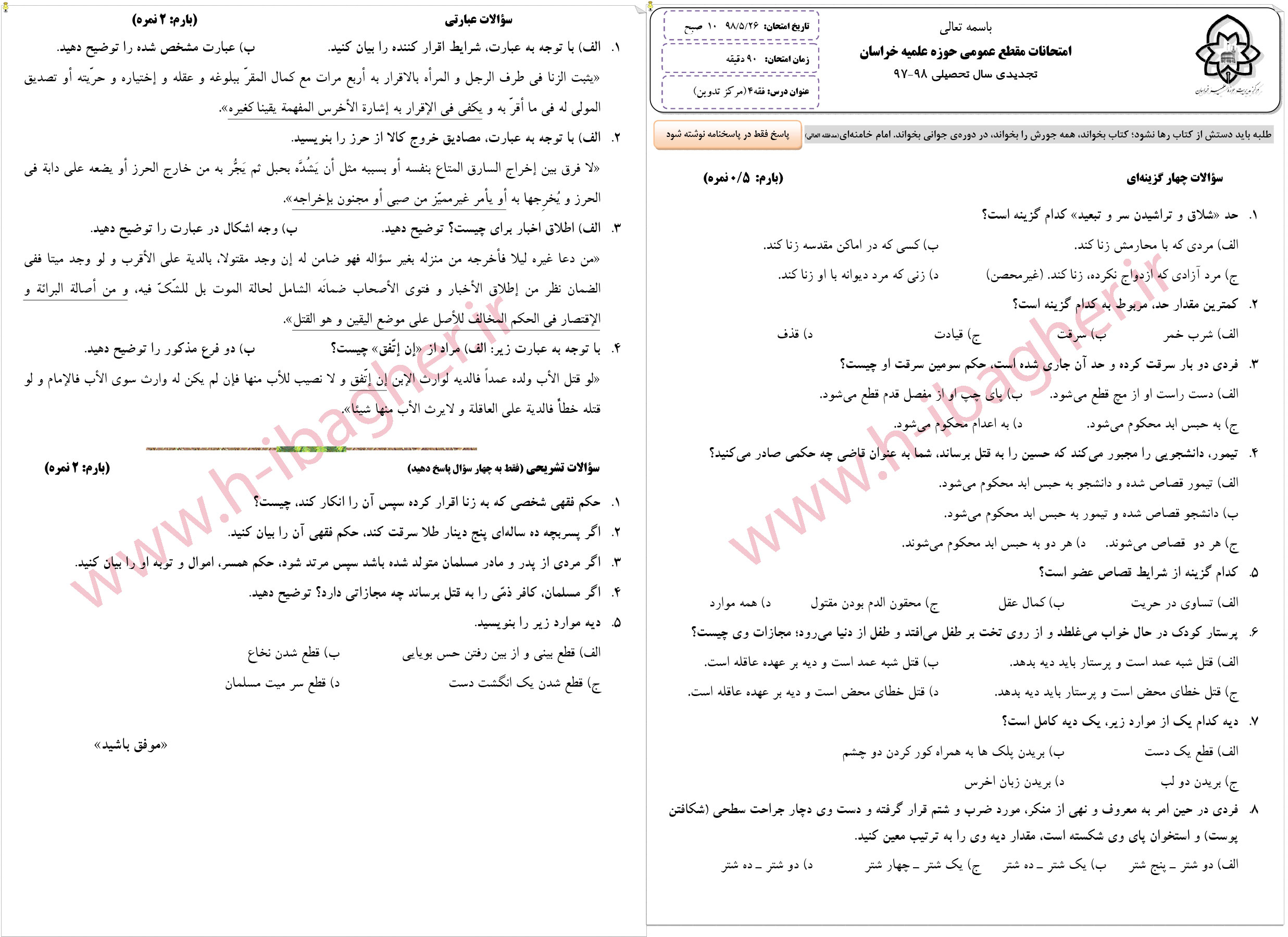 موقعیت شما : صفحه اصلی » پایه پنج » نمونه سوالات امتحانی
