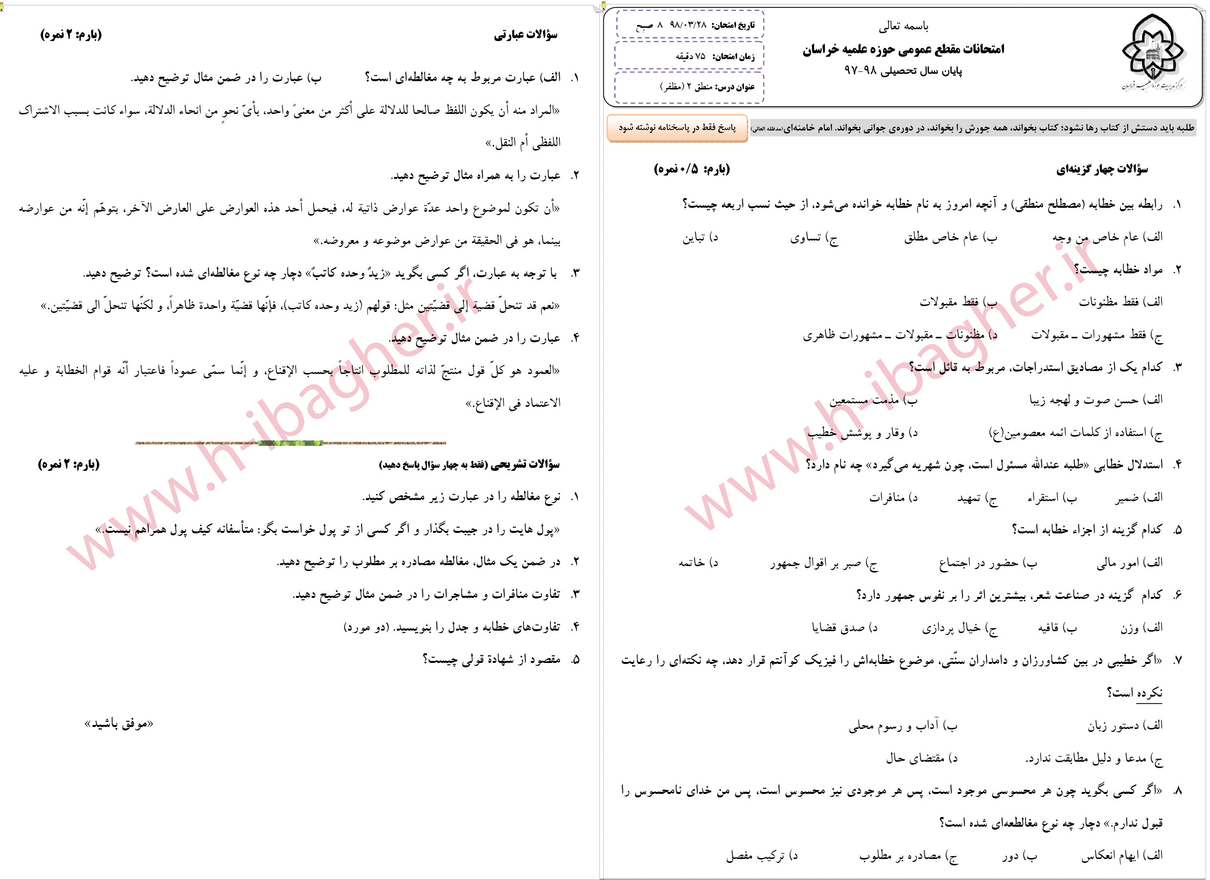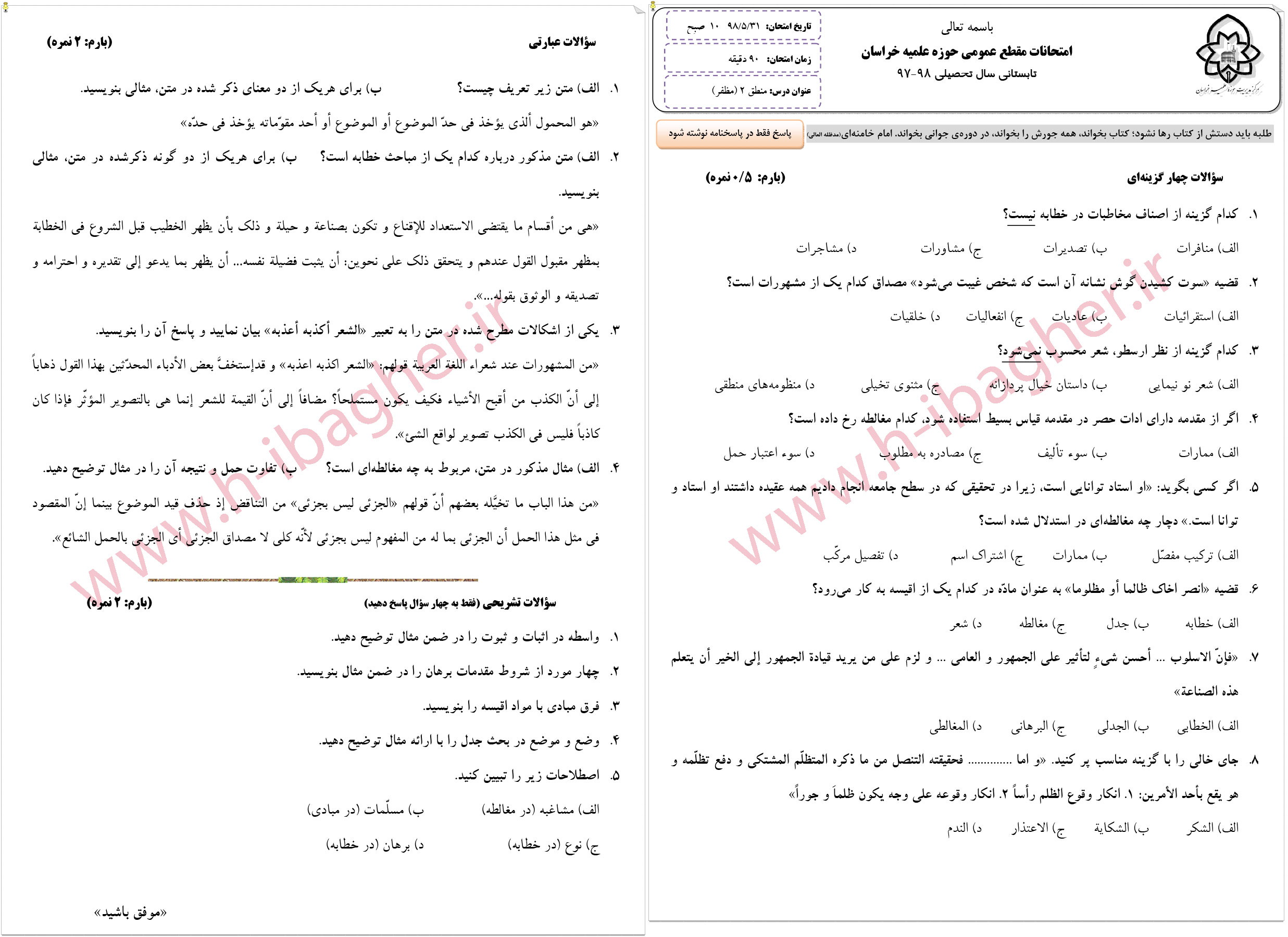 موقعیت شما : صفحه اصلی » پایه چهار » نمونه سوالات امتحانی