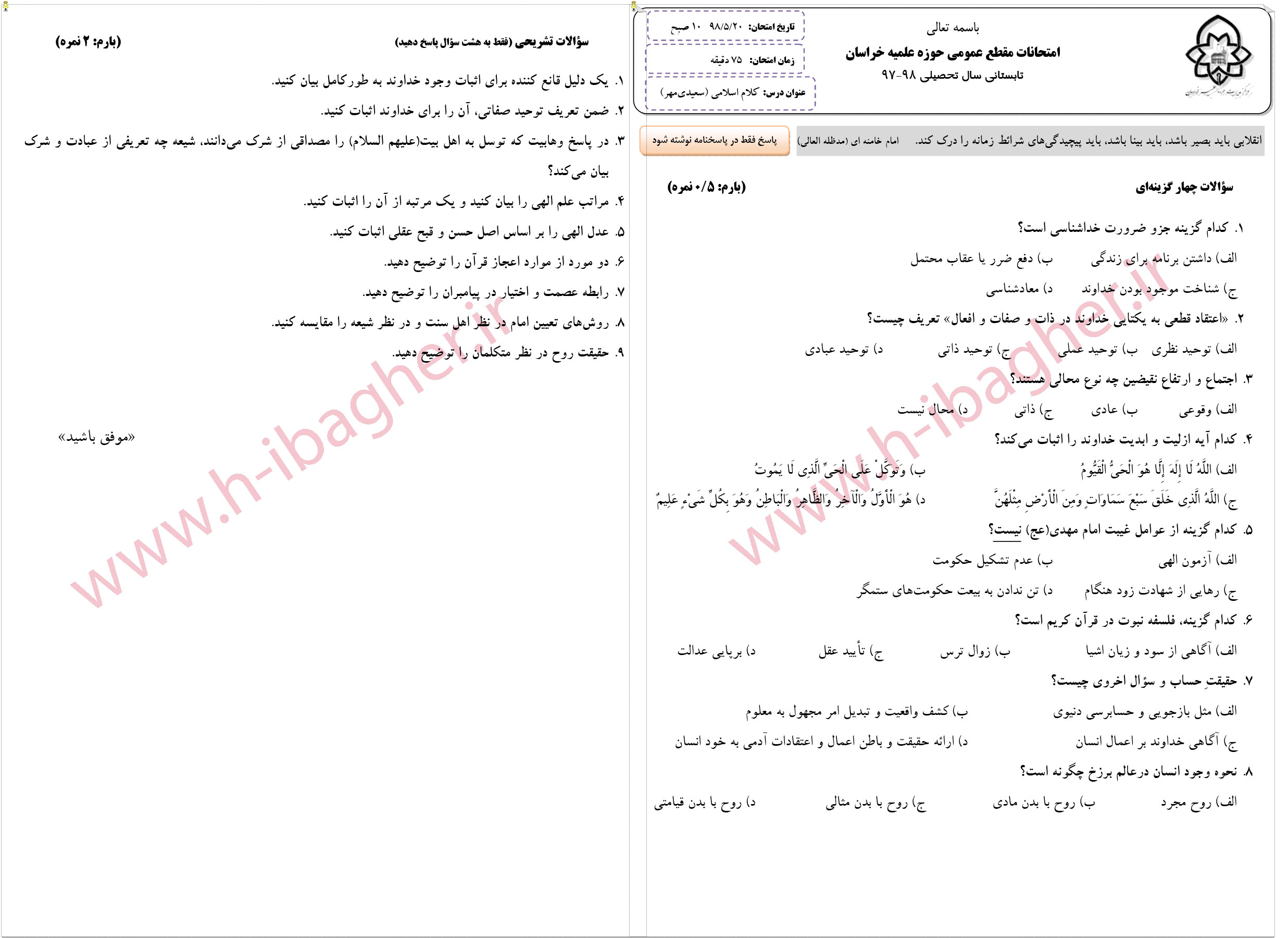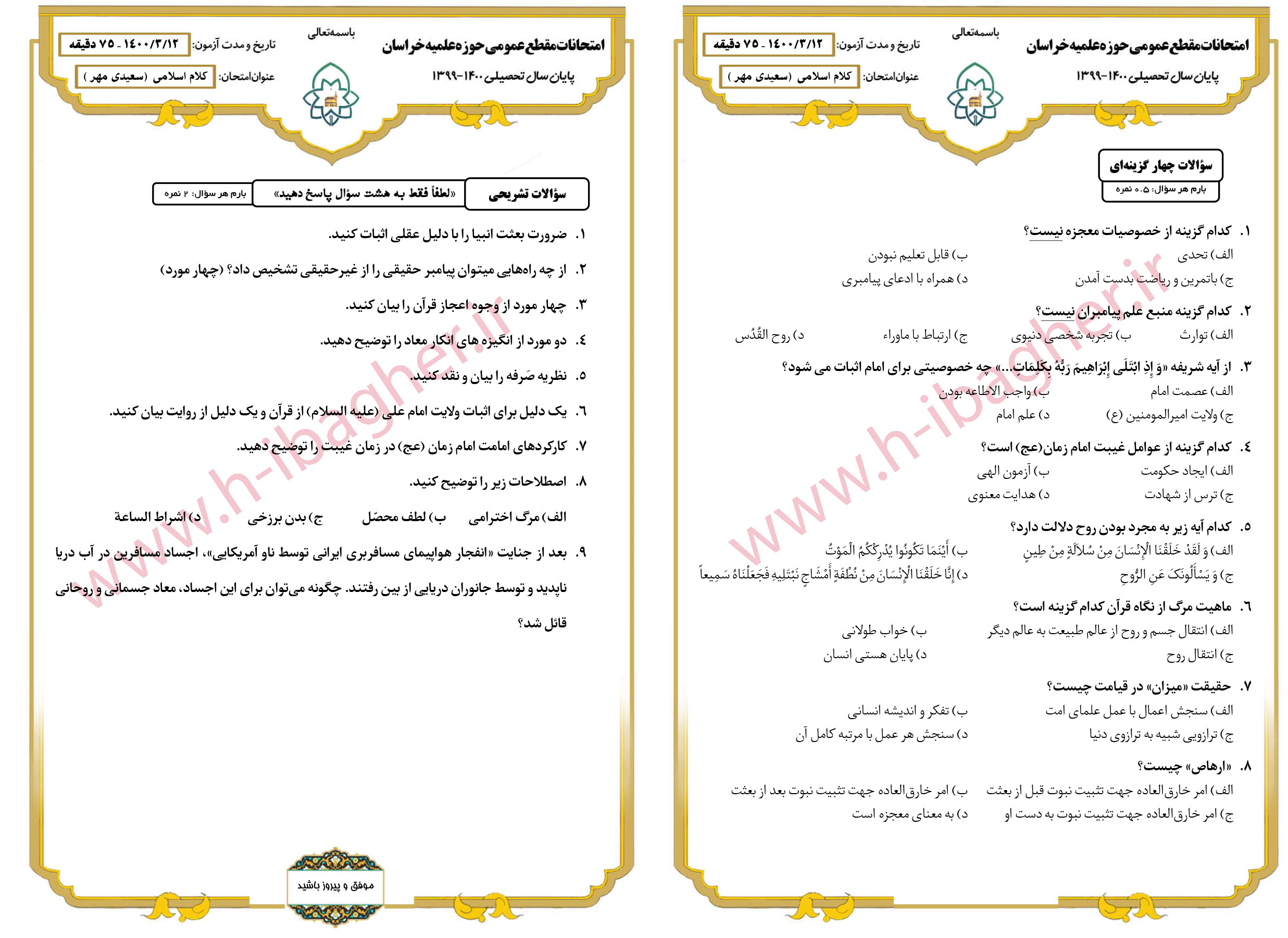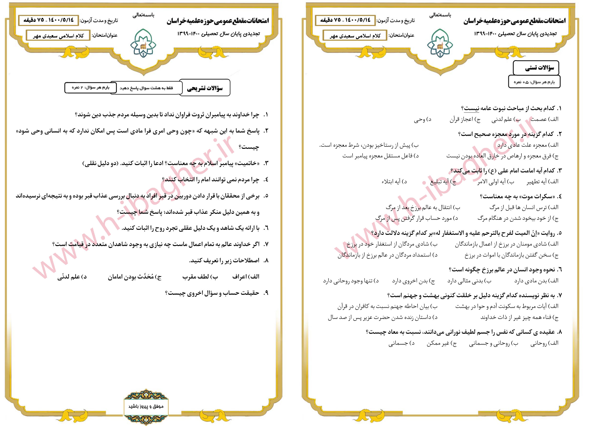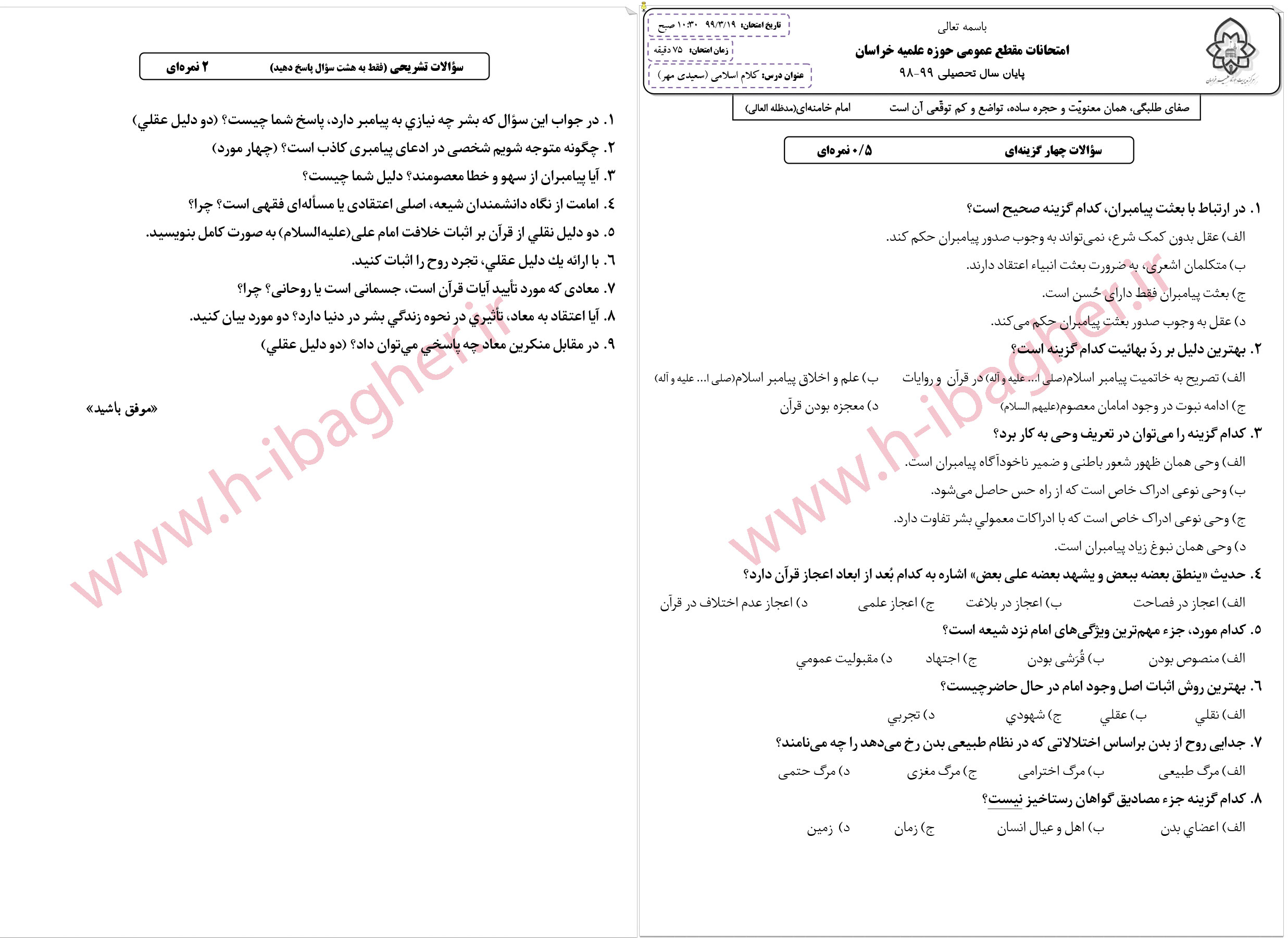 موقعیت شما : صفحه اصلی » پایه سه » نمونه سوالات امتحانی